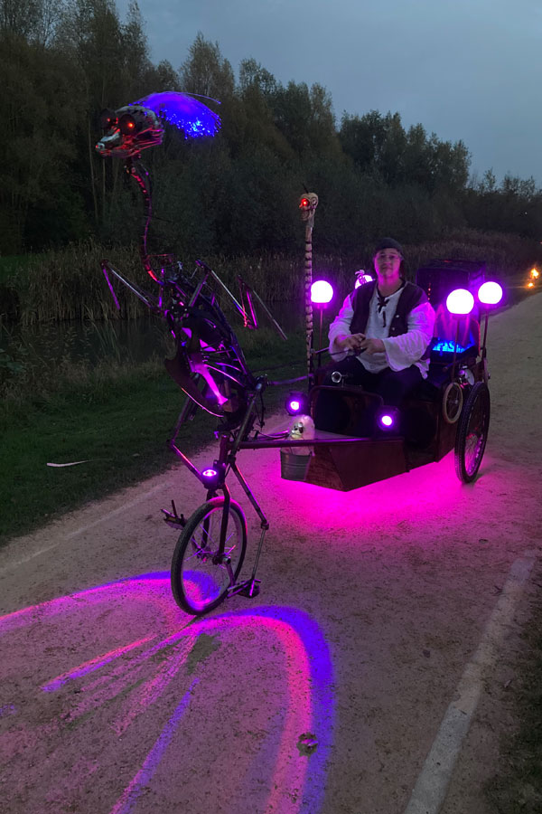 Als je goed kijkt kom je de meest fantastische en vreemde wezens tegen. Zoals De Collector. Deze mobiele act heeft een leuke interactie met het publiek doordat de collector altijd op zoek is naar interessante spulletjes, en of dat nou in jouw jaszak zit of op de grond ligt, dat maakt hem niet uit. Door de verlichting is de act heel geschikt voor optredens bij donker (dus ook met Halloween), maar de verlichting geeft ook overdag een meerwaarde aan deze mobiele-act.